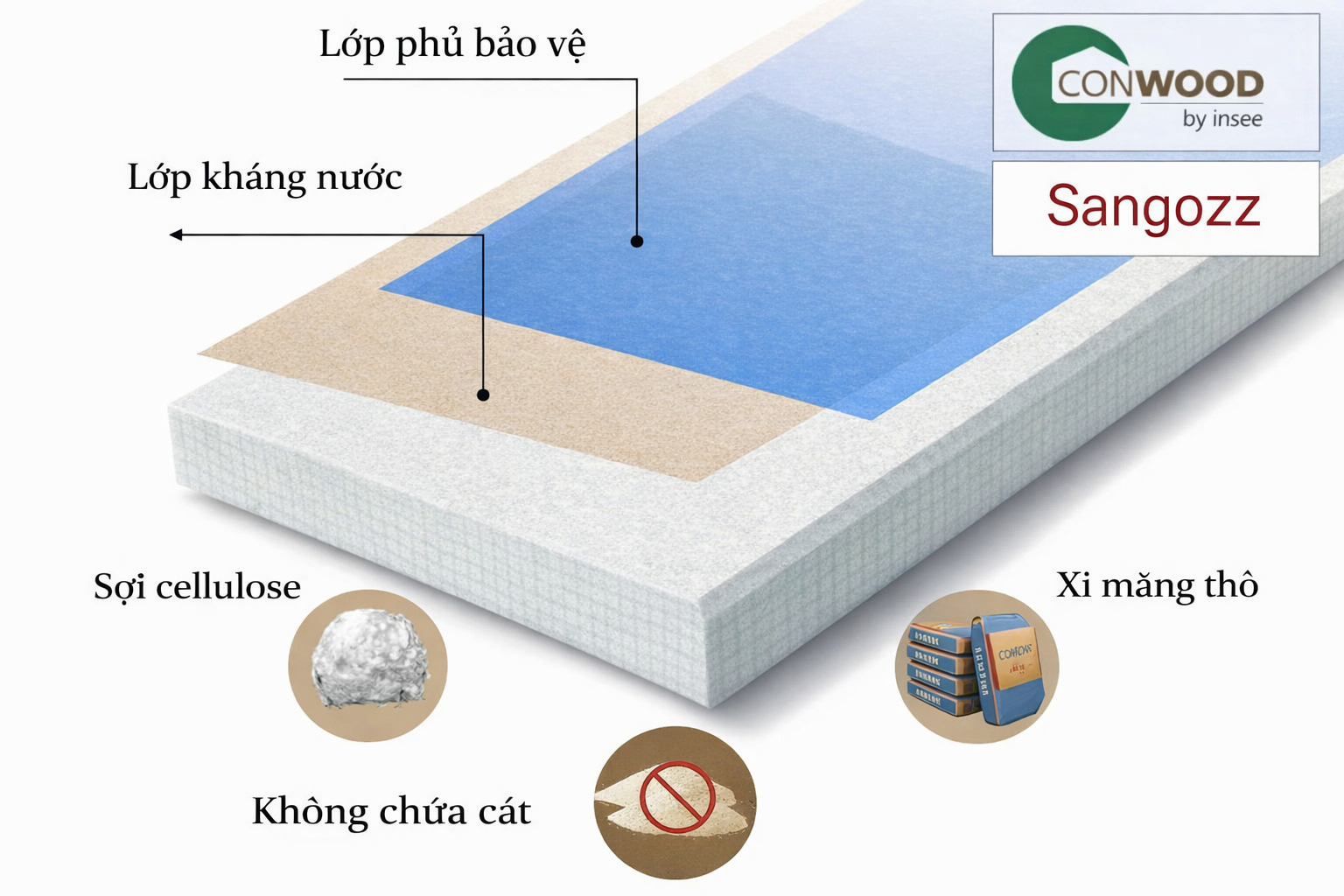 Cấu tạo tấm xi măng giả gỗ Conwood.